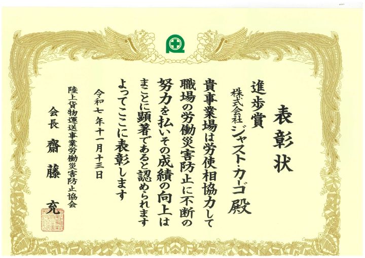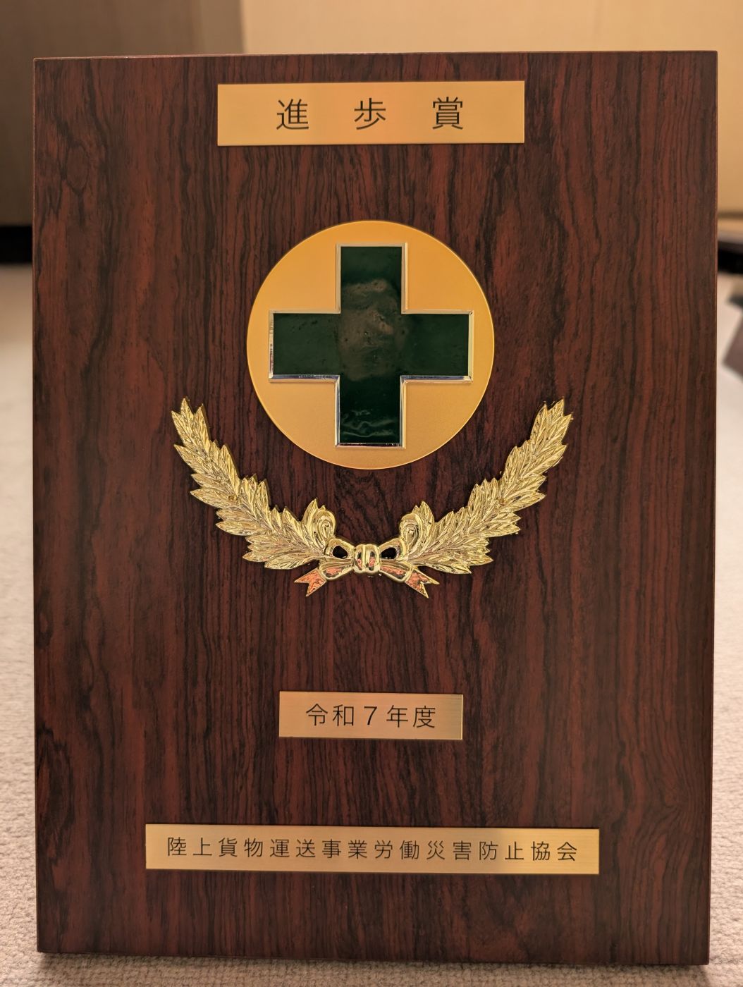 陸上貨物運送事業労働災害防止協会様より「進歩賞」を頂きました。